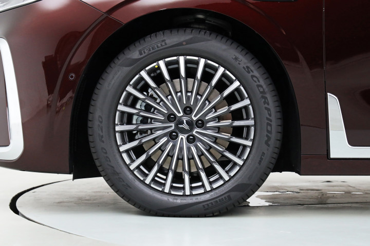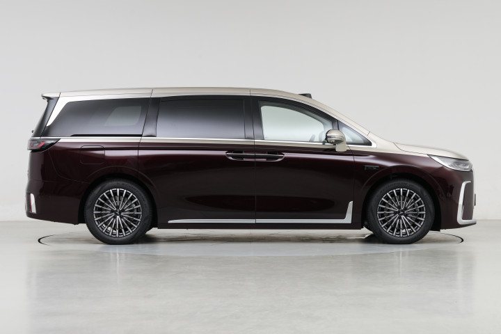 侧面采用了悬浮车顶设计,隐藏式滑轨电动侧滑门不仅实用,还让车身侧面看起来更简洁。20英寸多辐轮毂,搭配255/50 R20的轮胎,既保证了舒适性,又增添了几分运动感。而且这次新车还新增了“金銮红”双色车身方案,上半部熔岩红与下半部香槟金形成鲜明撞色,开在路上回头率肯定爆表。